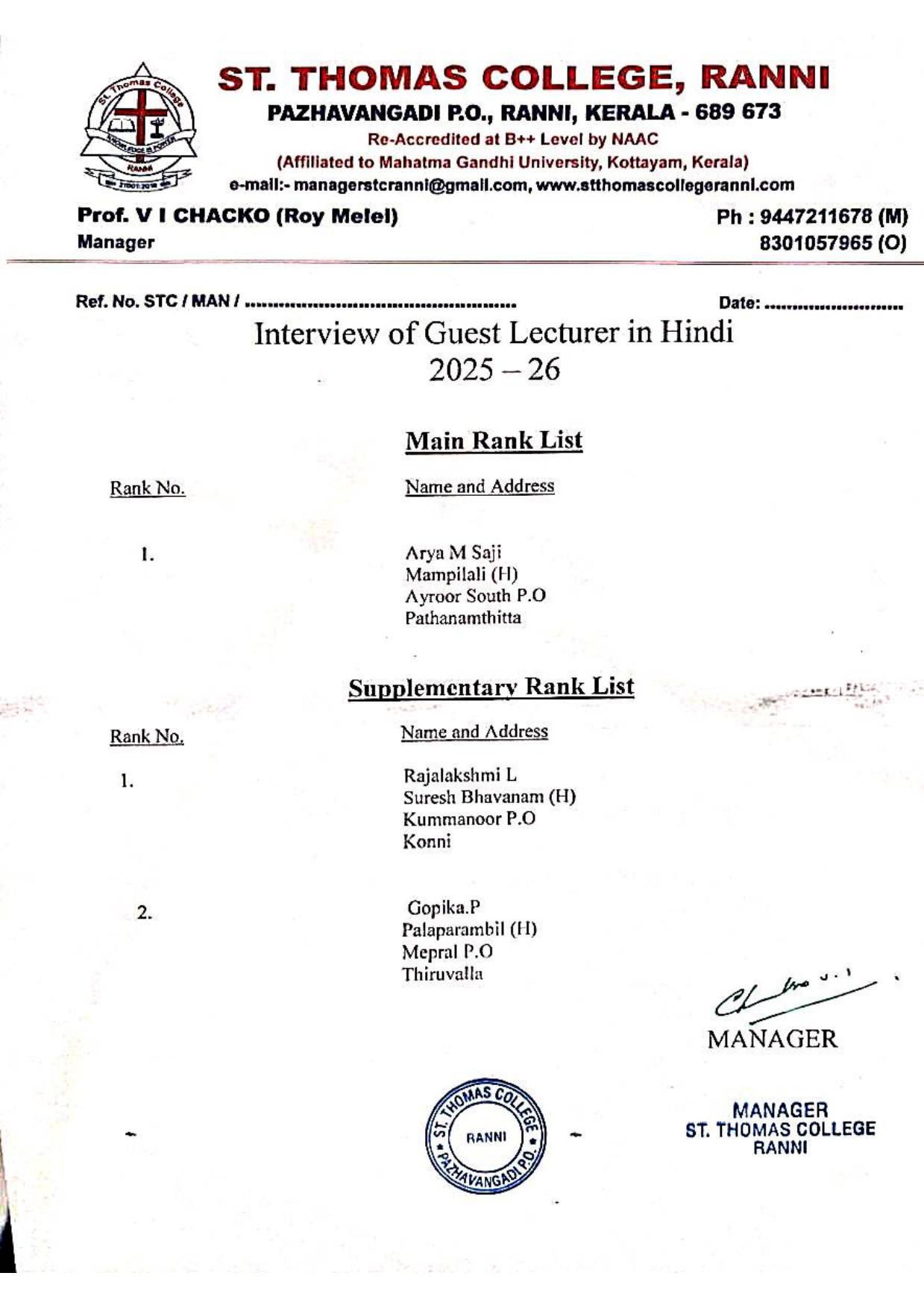 Affiliated To Mahathma Gandhi University, Kottayam, Kerala