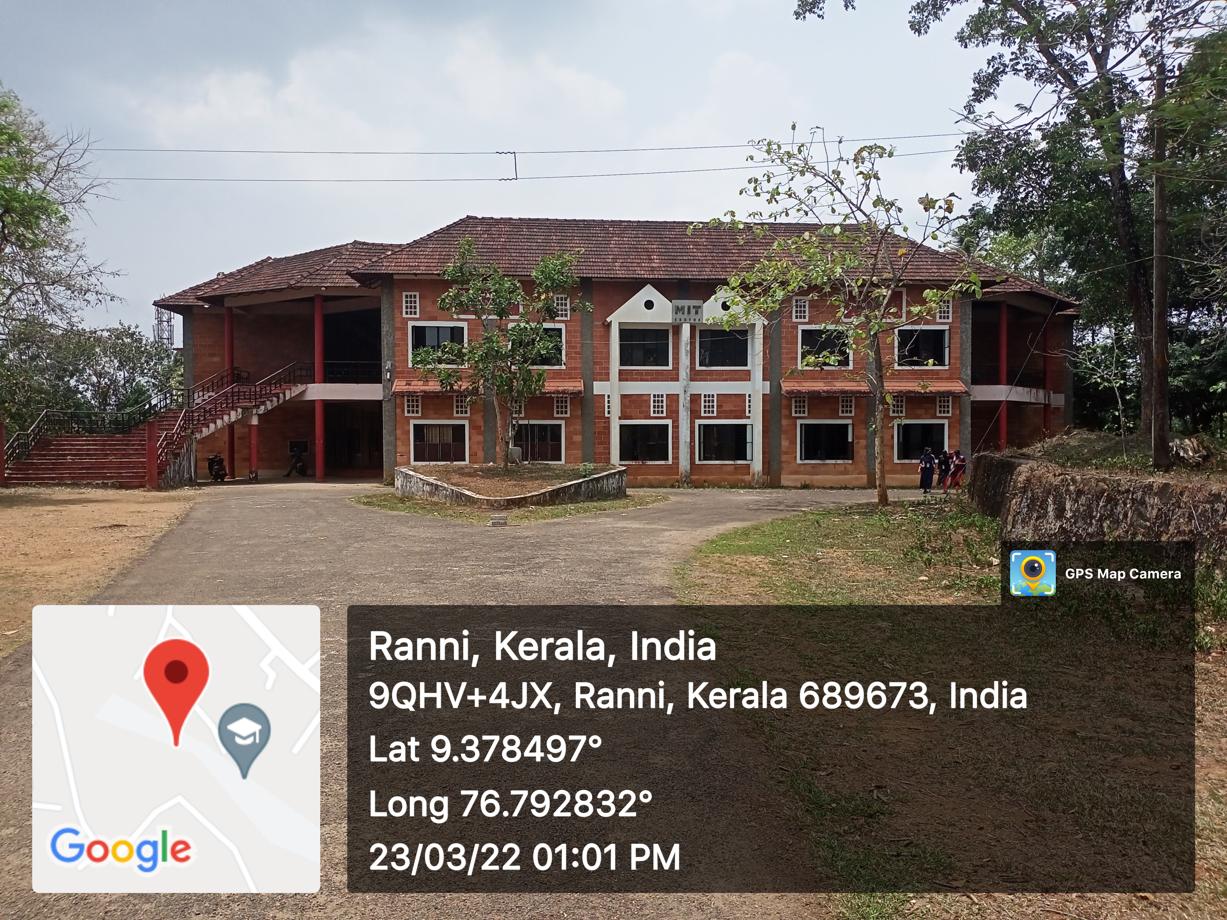 The college was established in 1964. The history of the college is embedded in the history of Ranni. The college is situated on the top of a serene hill, in a sylvan surrounding, away from the din and bustle of the city, is easily accessible and is at a walk able distance from the heart of Ranni town. There is a front office in the Main Block to provide proper directions to the visitors.The College offers 9 UG, 4 PG Programmes . All the Programmes have separate class rooms with adequate facilities for teaching-learning process. The college campus is divided in five blocks-Main Block, Library Block, Old Block, Nalukettu Block and Vayala Block. The College has adequate facilities for overseeing curricular and co-curricular activities in the campus
